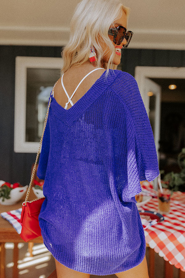 We have no doubt you will look beautiful in this royal blue colored top featuring lightweight knit material, a wide v-cut neckline, loose 3/4-length sleeves, and a slouched silhouette that falls into a straight tunic-length hemline! on products Measurements