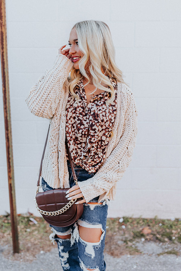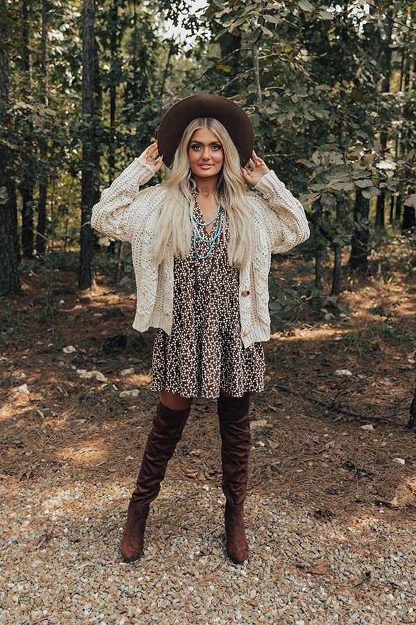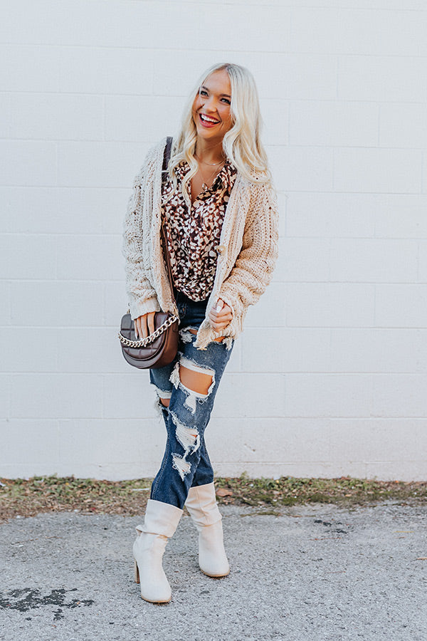 Drape yourself in style in our beautiful ivory hued cardigan featuring thick knit material, long loose sleeves, a button down front with a v-cut neckline, and a slouched silhouette that falls into a straight hemline!