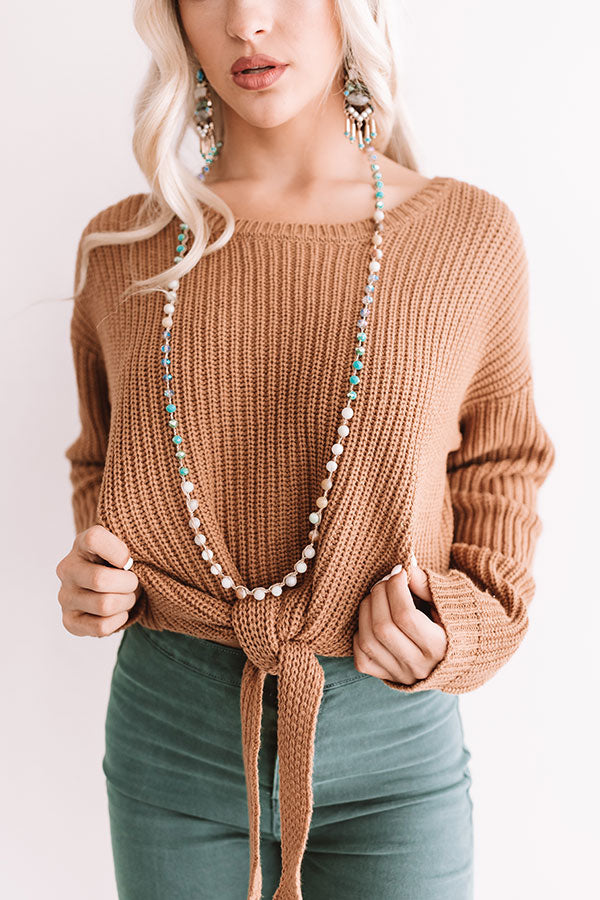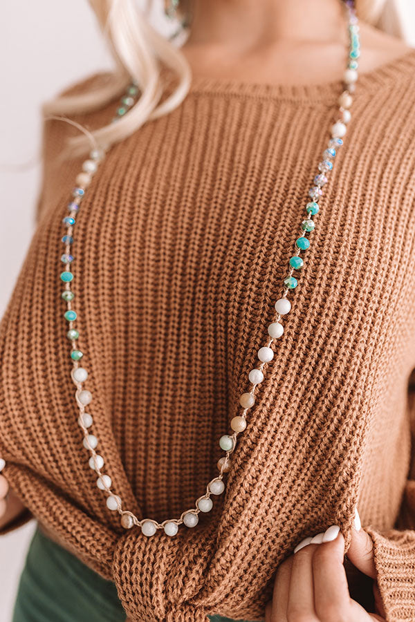 Accessorize your OOTD perfectly with the "Beauty And Bubbles" statement necklace featuring a long fit with a woven chain and emerald hued beads!