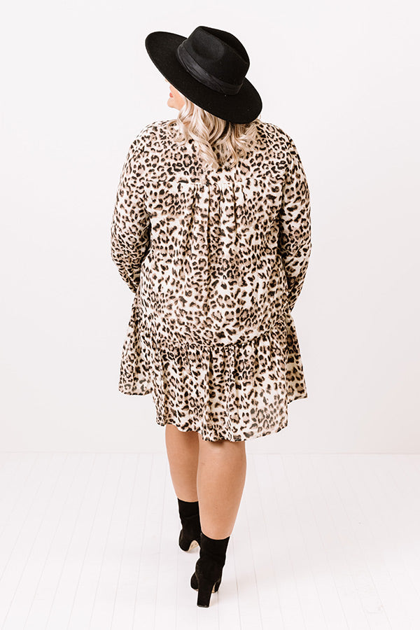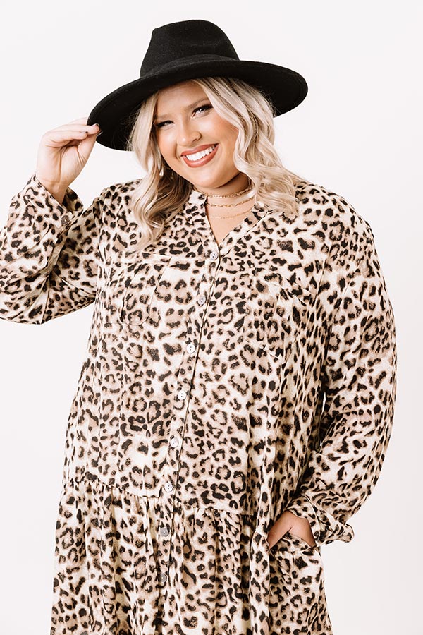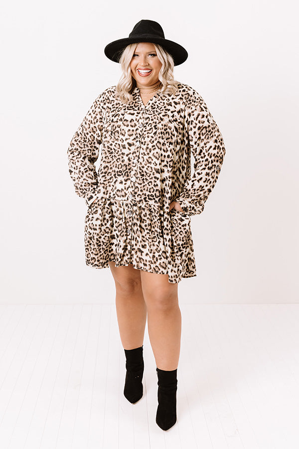 Plus Size - Showcase your inner beauty with this gorgeous shift dress featuring lightweight flowy material patterned with a bold black and neutral leopard print, long loose sleeves, a button down front with a v-cut neckline, and a relaxed silhouette that falls into a peplum bottom with an uneven mid-thigh length hemline!