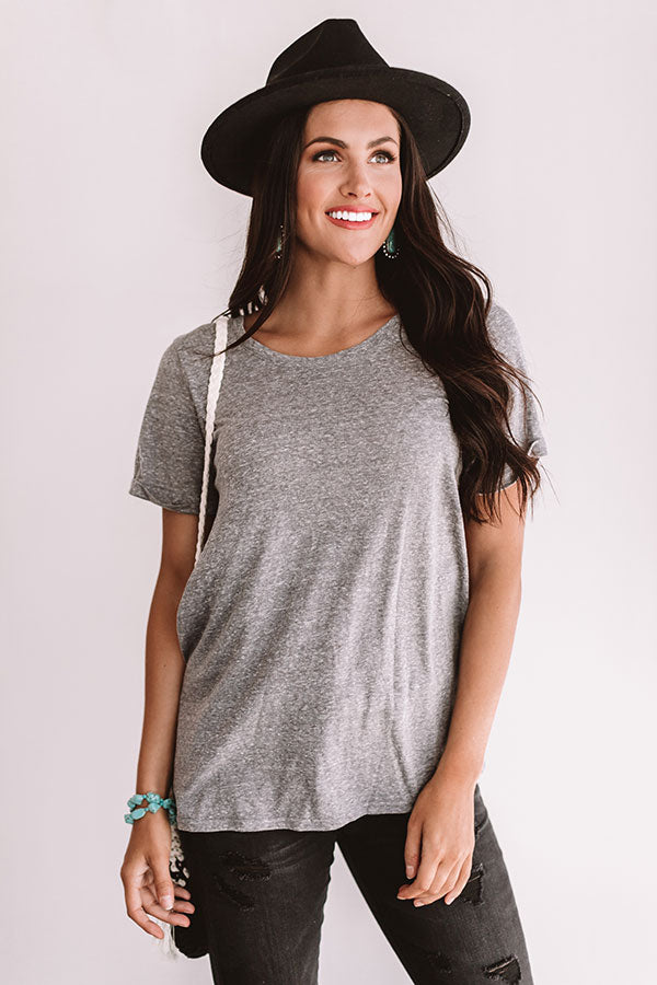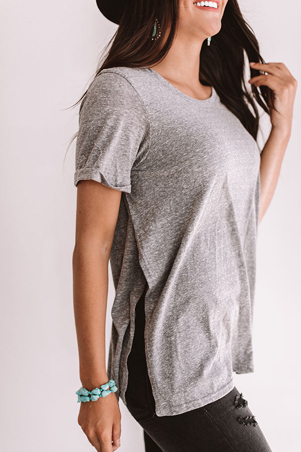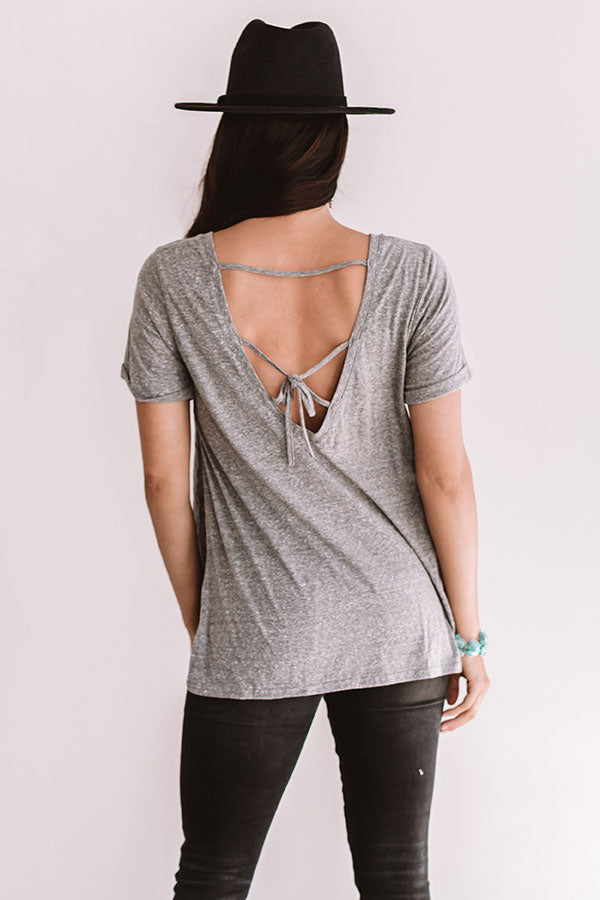 Believe the hype...this tee is a must-have because any casual outfit will get better with this sassy top! The poly cotton fabric forms a soft top that features high slits on the sides and two straps across the open v-back with one tying for fit! PLUS, the neutral shade of this top gives you the versatility to explore a wide variety of styling options like pairing it with distressed black skinnies and a faux suede hat or with your favorite denim shorts and trendy sneakers! Measurements