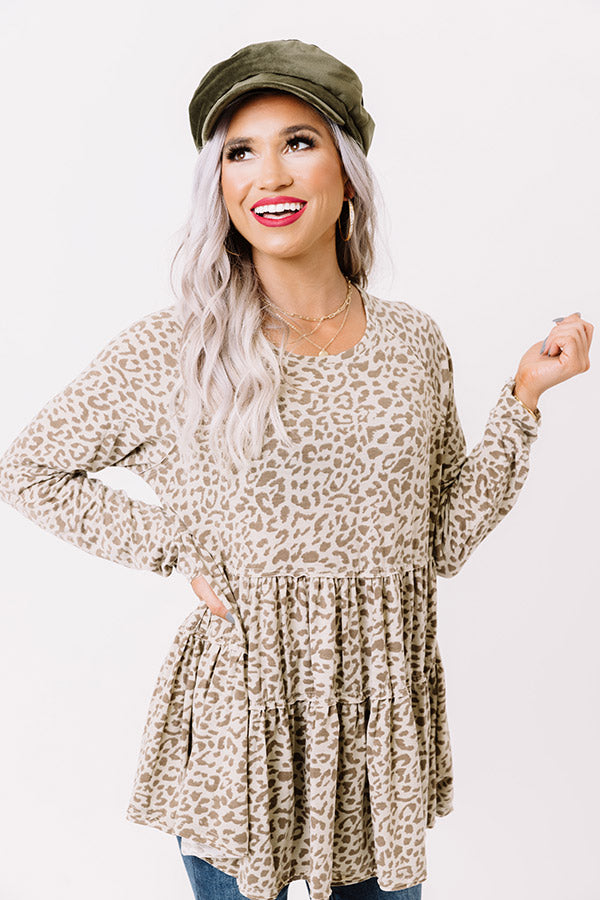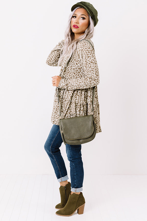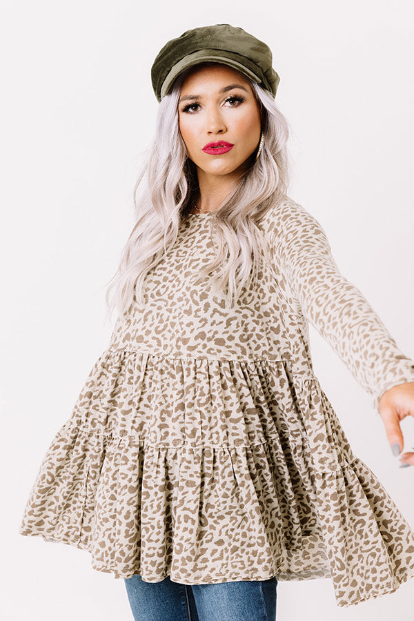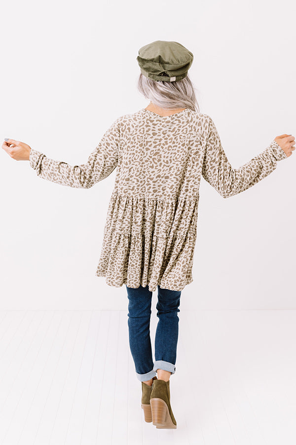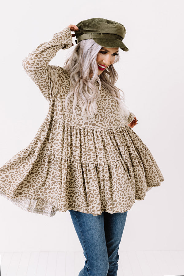 Show off your amazing style with our adorable "Believing In Forever" shift top featuring soft lightweight material patterned with leopard print, a high rounded neckline, long loose sleeves, exposed raw cut accent seams, and a relaxed tiered silhouette that falls into an uneven hemline! The base color of the top is a heather grey with slight green undertones.