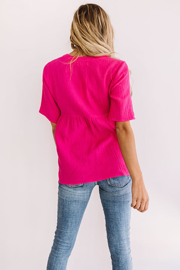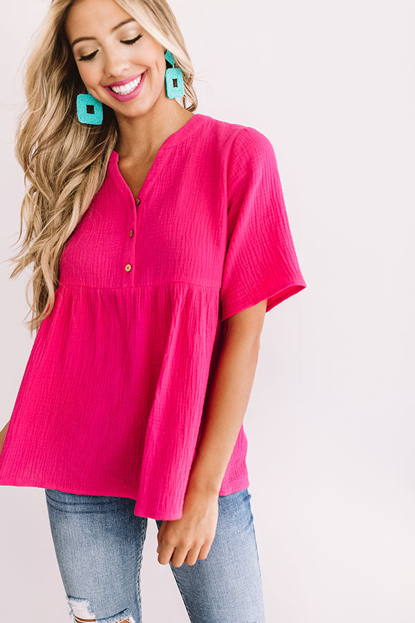 Bellini Brunch Henley Top In Hot Pink