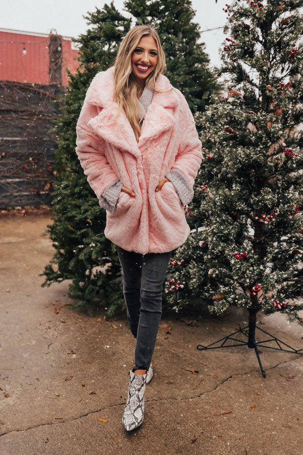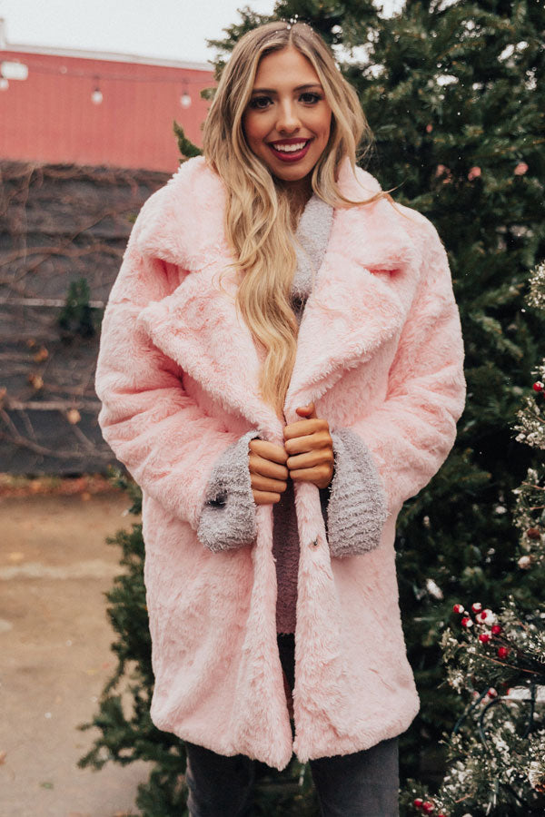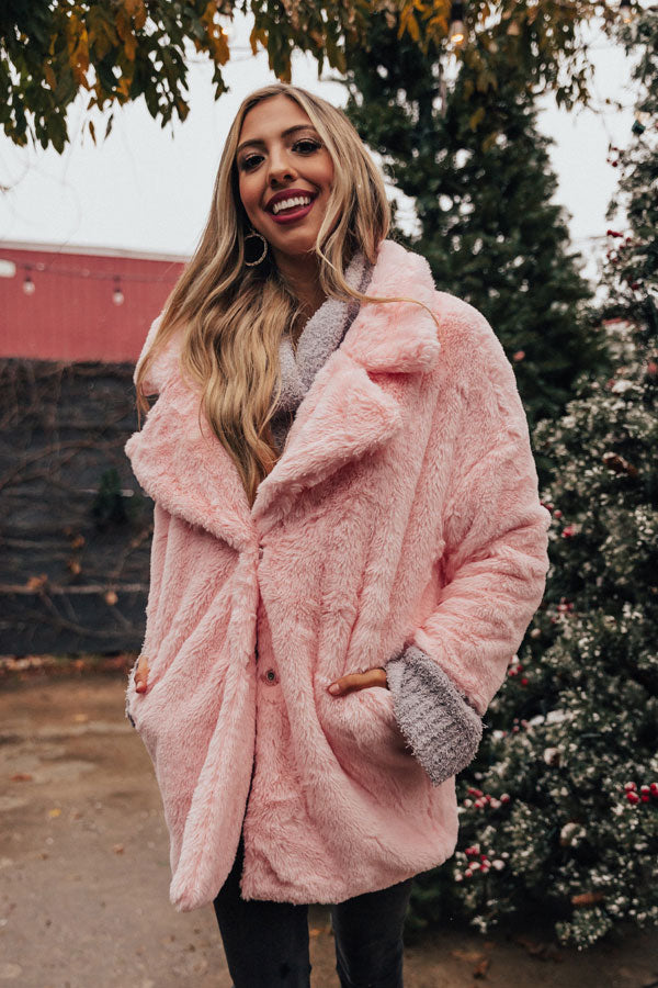 There is no better piece to keep you warm when it is "below zero" than this adorable pink plush coat featuring ultra soft faux fur material, a thick flap collared neckline with v-cut notches, long loose sleeves, low side accent pockets, and a relaxed open front silhouette that falls into a straight upper-thigh length hemline! You can style this versatile piece with just about anything from a basic tank to a sweater, jeans to skirts or dresses, booties to wedges or sandals, clutches to totes, and hats to earrings! Measurements
