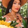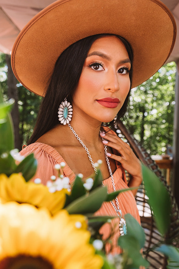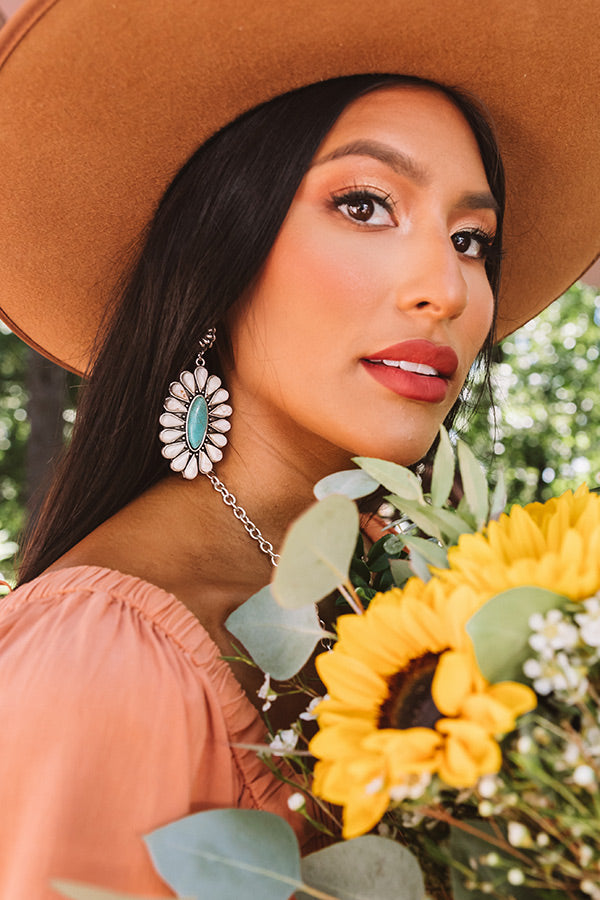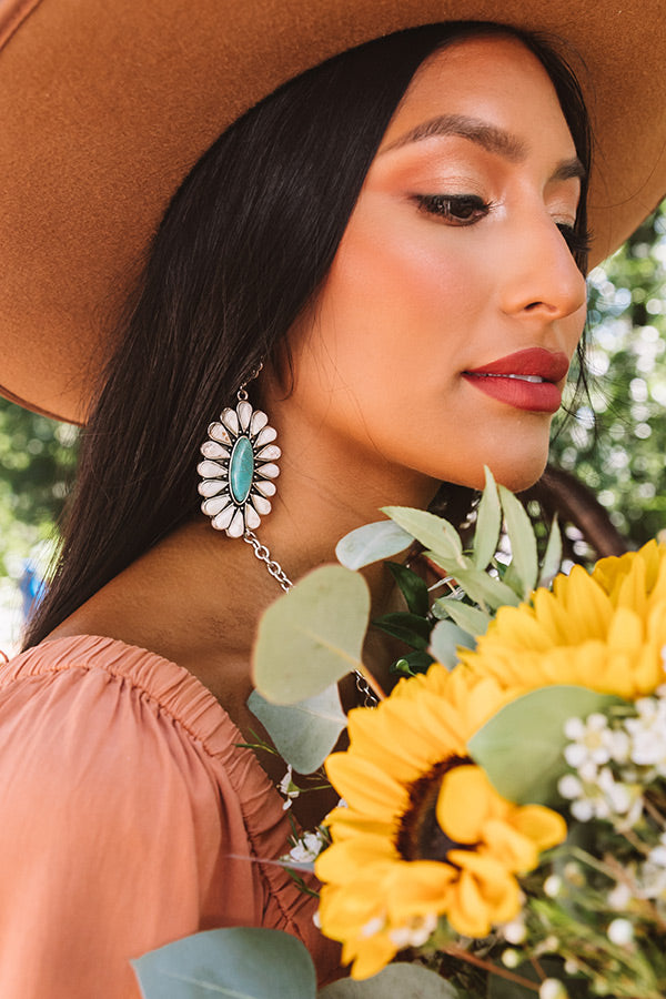Add a wonderful pop of color to any OOTD by accessorizing with our stunning "Best Guess" statement earrings featuring dangling turquoise oval stones surrounded by smaller white teardrop shaped stones!