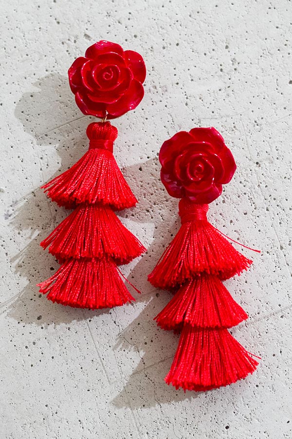 Best In Blooms Tassel Earrings In Red