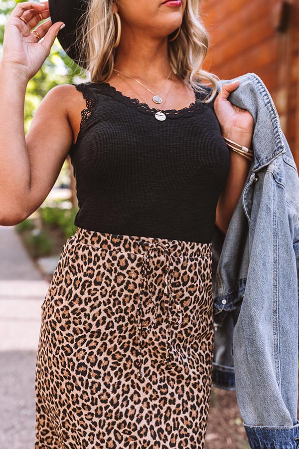 You will surly be the "best in show" when you wear this fierce skirt featuring lightweight material patterned with a brown and black leopard print, an elastic waistline, accent side pockets, and a figure flattering silhouette that falls into a round knee-length hemline! We have styled this adorable piece with a basic black tank layered under a jean jacket, matching espadrilles, a brown bucket bag, and faux suede hat, but you can also wear it with our "Out Of Office Tee" and "The Ariella Heel in Hot Pink!" Measurements