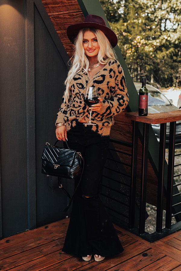 People are going to look to you as a style mentor when you add this cute iced latte hued sweater to your wardrobe with its soft material, bold black leopard print, a twisted front detail with a v-cut neckline, long loose sleeves, and a slouched silhouette that falls into a straight hemline!