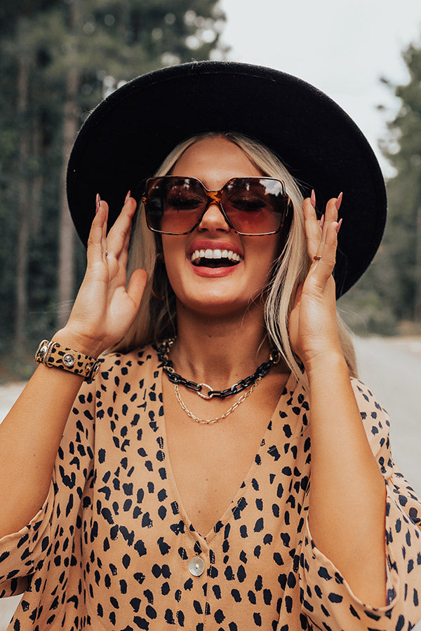 You are sure to be someones style mentor when you complete your look with these chic sunnies featuring large oversized square tortoiseshell frames and brown tinted lenses!