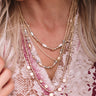 This five layered statement necklace is the "best one yet" with its dainty gold chains, gold beads, and gold circle charms!