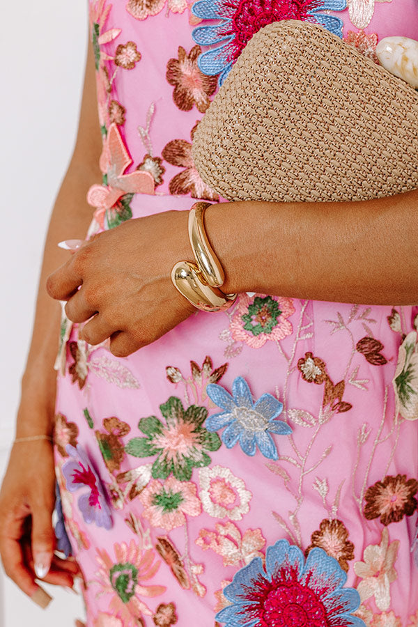 - This dazzling gold cuff bracelet is like a burst of sunshine on your wrist! Its chic design and gleaming golden color adds a charming touch to you trendy look.