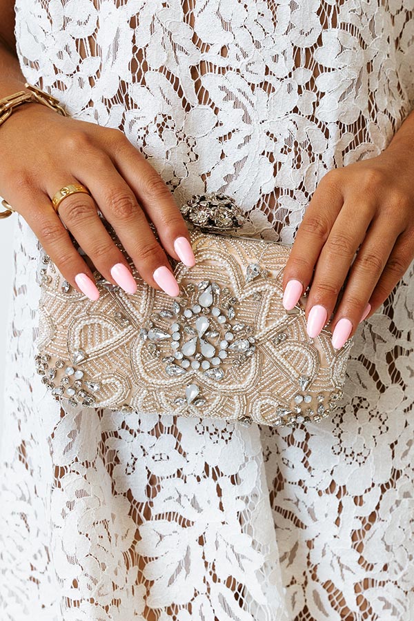 Finish off your look in the most glamorous of ways with this stunning clutch featuring gold beaded and rhinestone embellishing, a chain link shoulder, and a structured fully lined silhouette with a clasp closure!