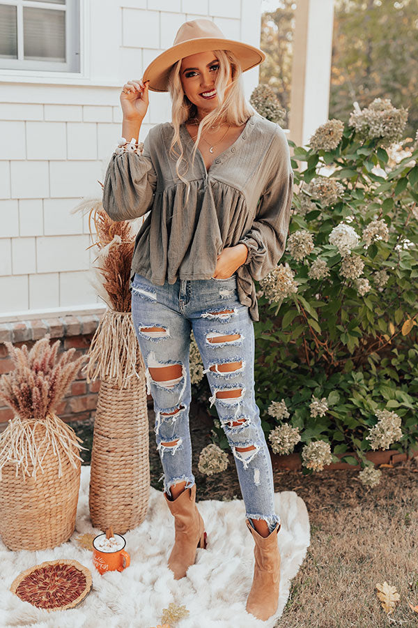 Sweet and effortless, the 'Better in Boulder Babydoll Top' features a split neckline with buttons that cascades down into the cutest cropped babydoll bodice. This top has oversized gathered sleeved and plenty of personality. Pair with booties and distressed denim for a casual look you'll wear on repeat! Measurements