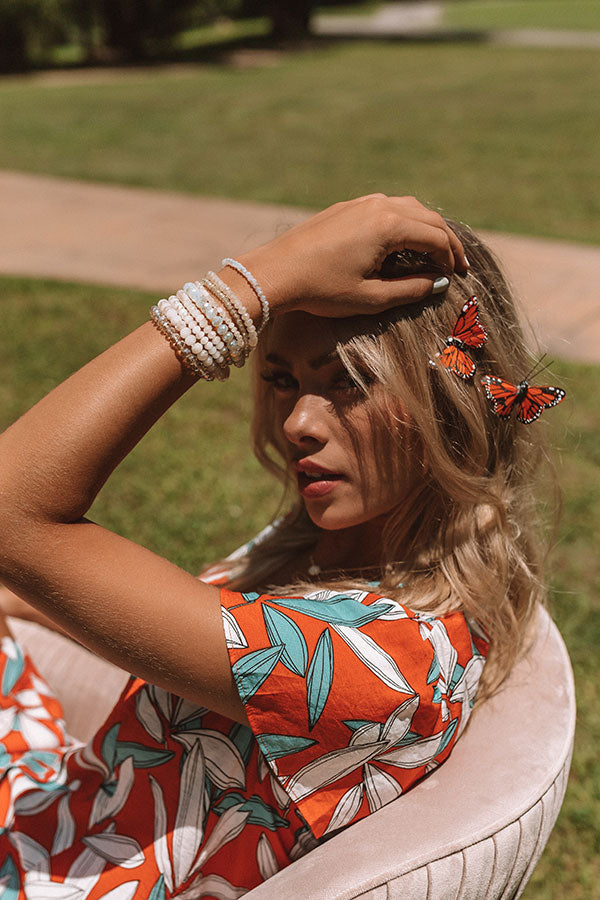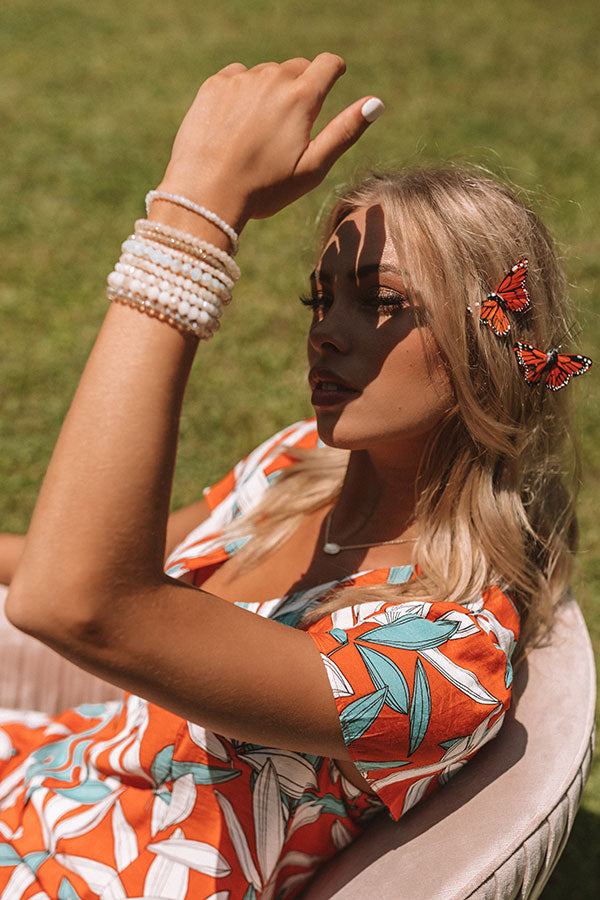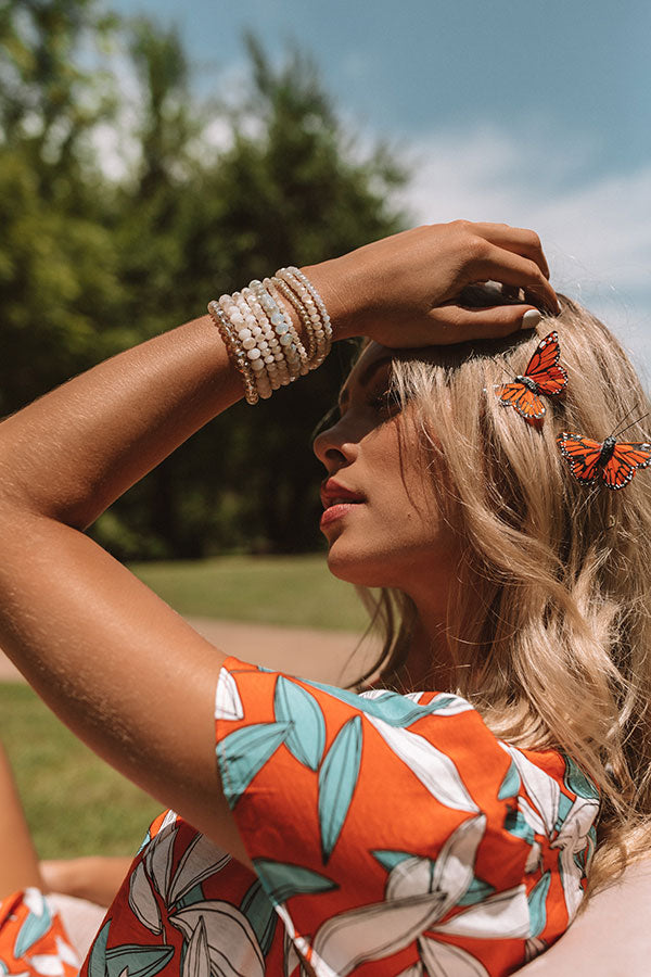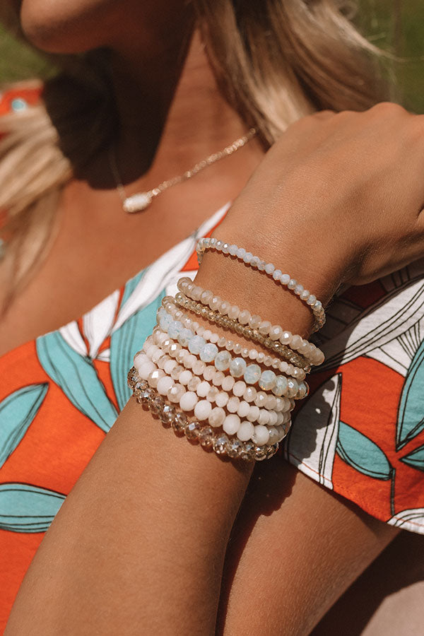 One of the best summer accessories is bracelets and the more the merrier! This stone beaded set will add some sparkle to any outfit! With the size and shape of the beads varying with each one, there is no doubt this will be one of your versatile go-to summer accessories!