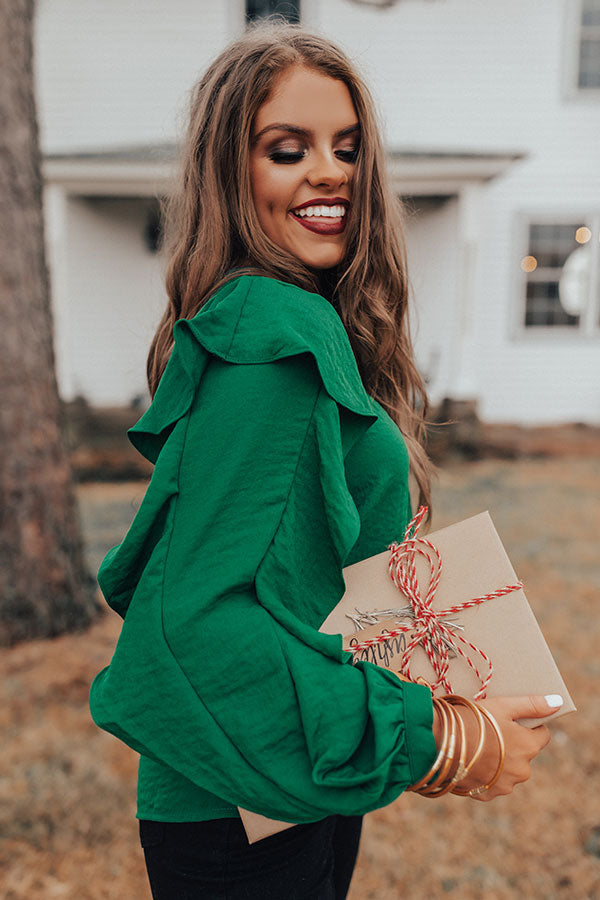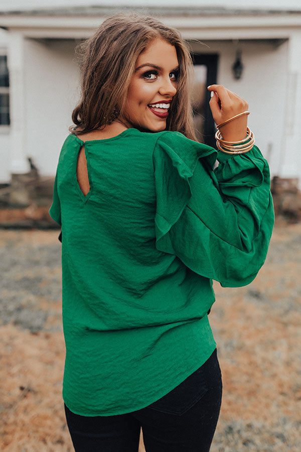 Better With Merlot Ruffle Shift Top in Green