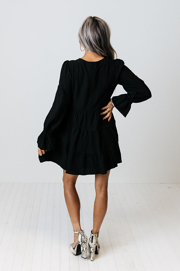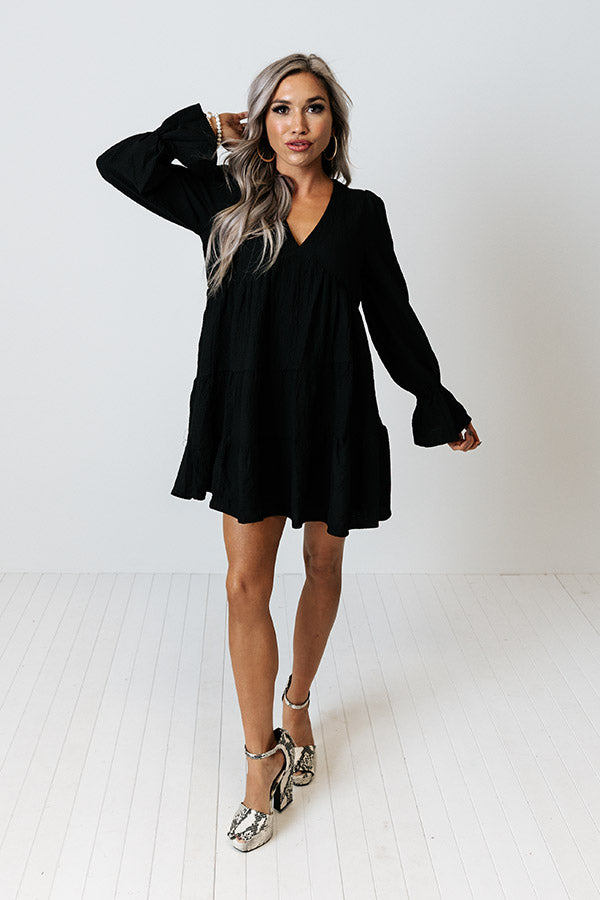 Twirl into style in our adorable black 'Beyond Blessed' dress featuring lightweight material, a v-cut neckline, long bishop sleeves with flared cuffs and subtle puff shoulders, and a relaxed babydoll silhouette that falls into a straight mid-thigh length hemline! Measurements