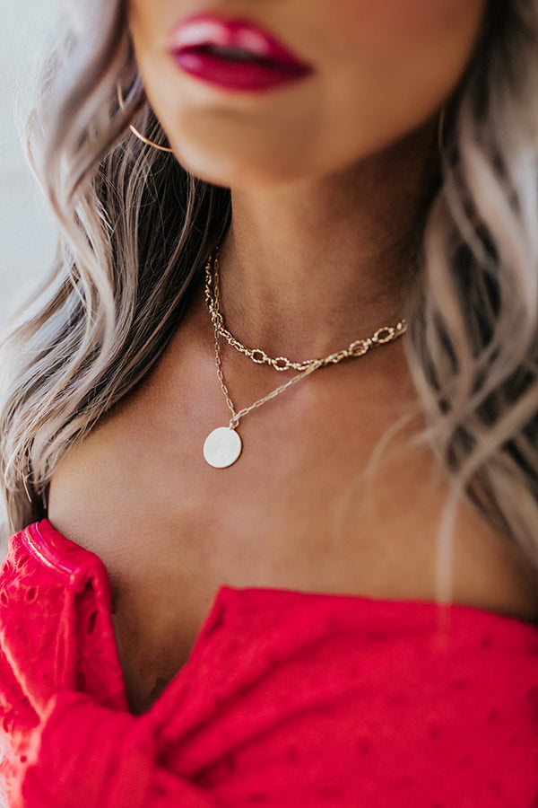 Upgrade any look by accessorizing with our luxe gold 'Beyond The Berkshires Necklace' featuring a chain link choker and a dainty chain with a gold circle pendant!