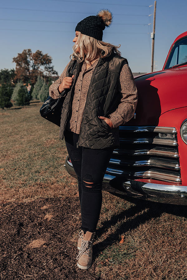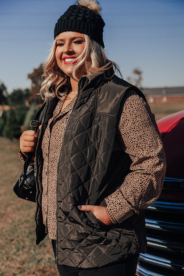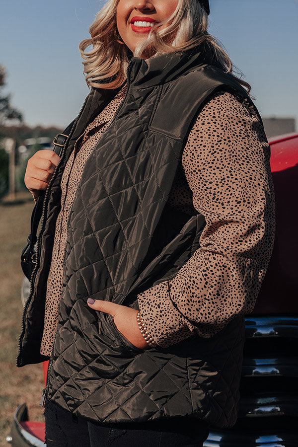 Big Bear Lake Quilted Vest in Dark Olive Curves