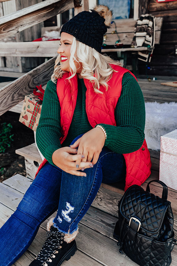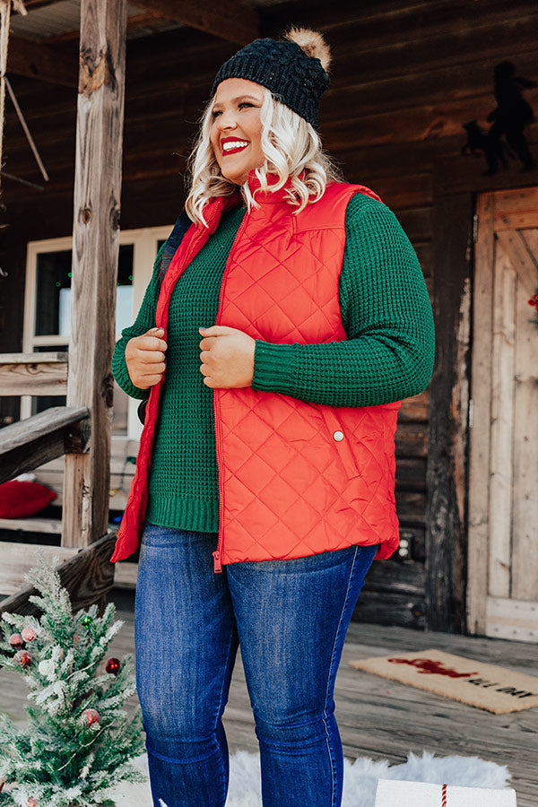 Plus Size - Layer up for the holiday season with our charming wine colored 'Big Bear Lake' vest featuring sleek lightweight material with quilted texturing, a zip front closure with a collared neckline, wide 4-inch sleeveless shoulders, accent side pockets with snap button closures, and a flattering silhouette that ends in a straight hemline! Measurements