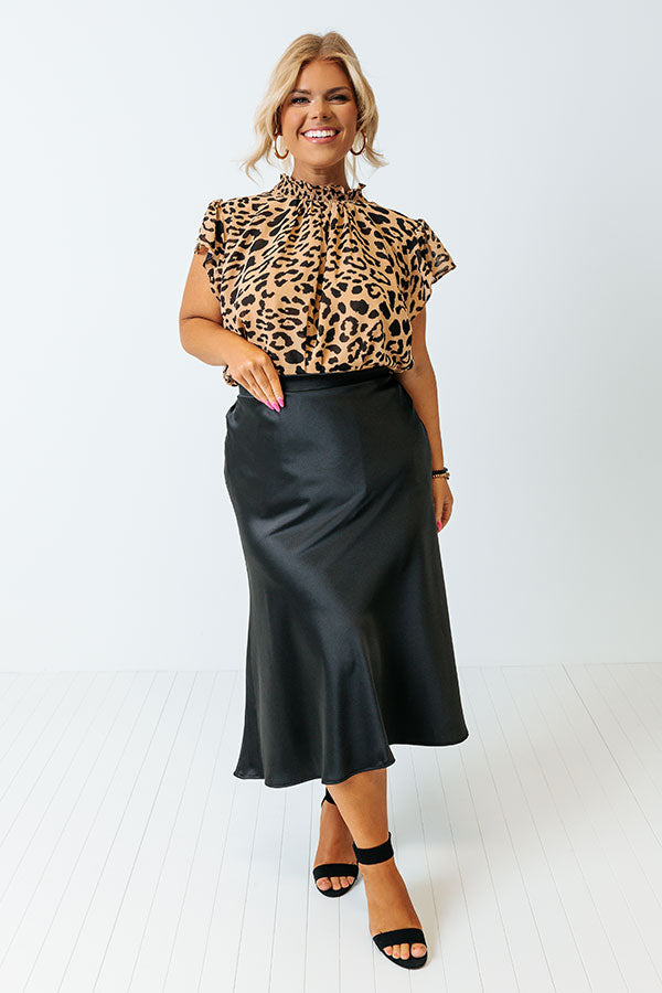 Slay all day in our cute tan hued plus size 'Biggest Claim To Fame' top featuring lightweight material patterned with a black leopard print, a high rounded neckline, ruffled cap sleeves, and a relaxed silhouette that falls into a straight hemline! on products