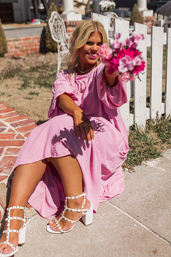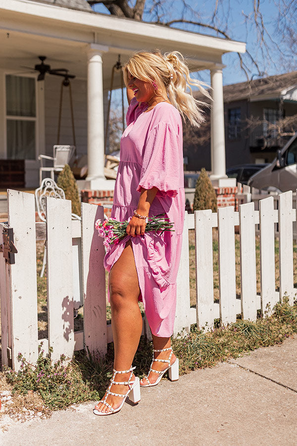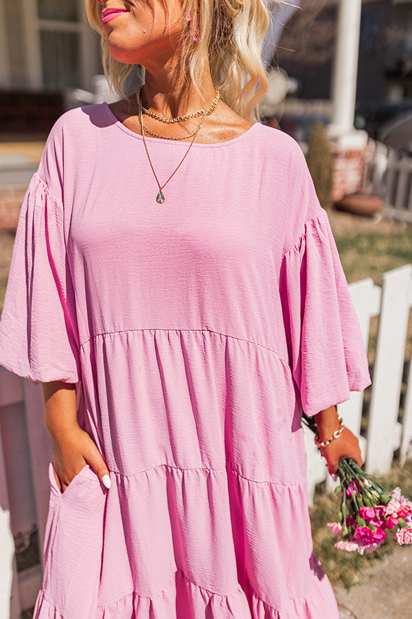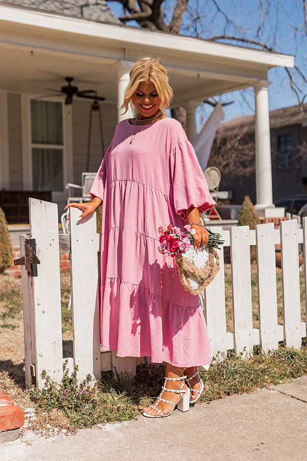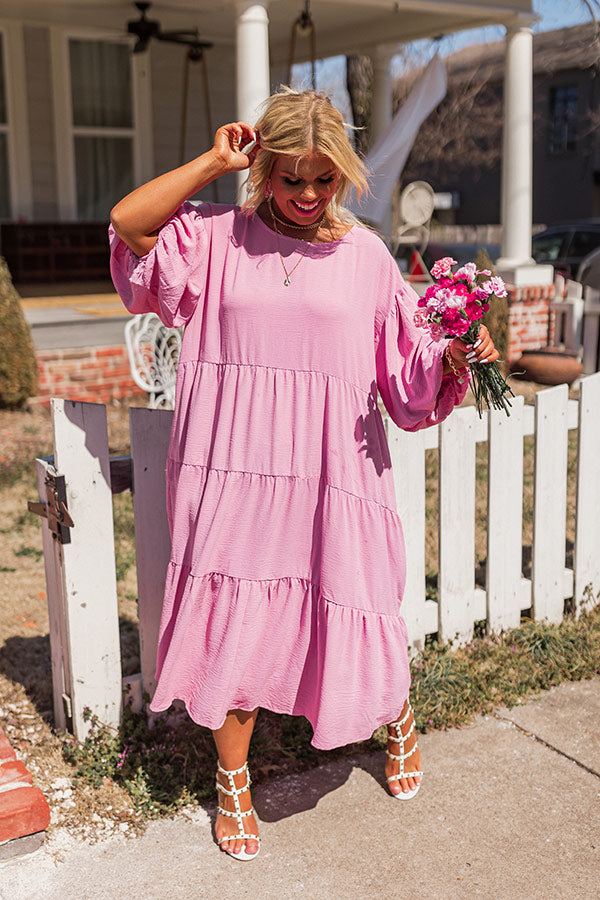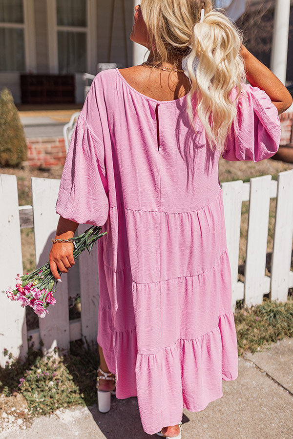 Get dressed in style and comfort in our adorable blush colored plus size 'Blessings Everywhere Midi' dress featuring lightweight material, a rounded neckline, oversized bubble half sleeves, hidden side pockets, a zip closure upper back, and a tiered skirt silhouette that cascades into a straight mid-calf length hemline! on products