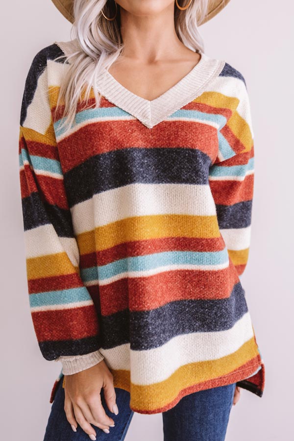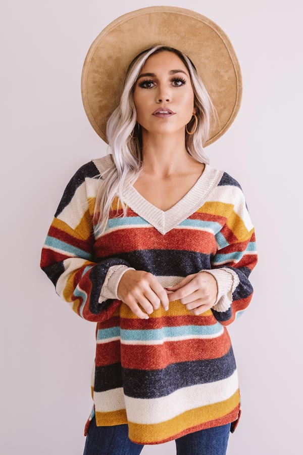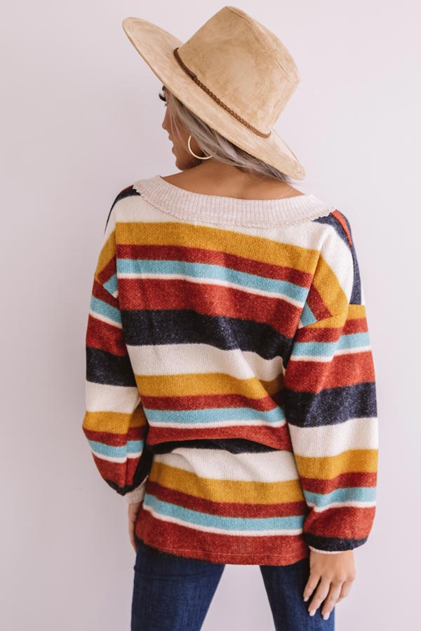 Bliss By The Fire Stripe Sweater In Red