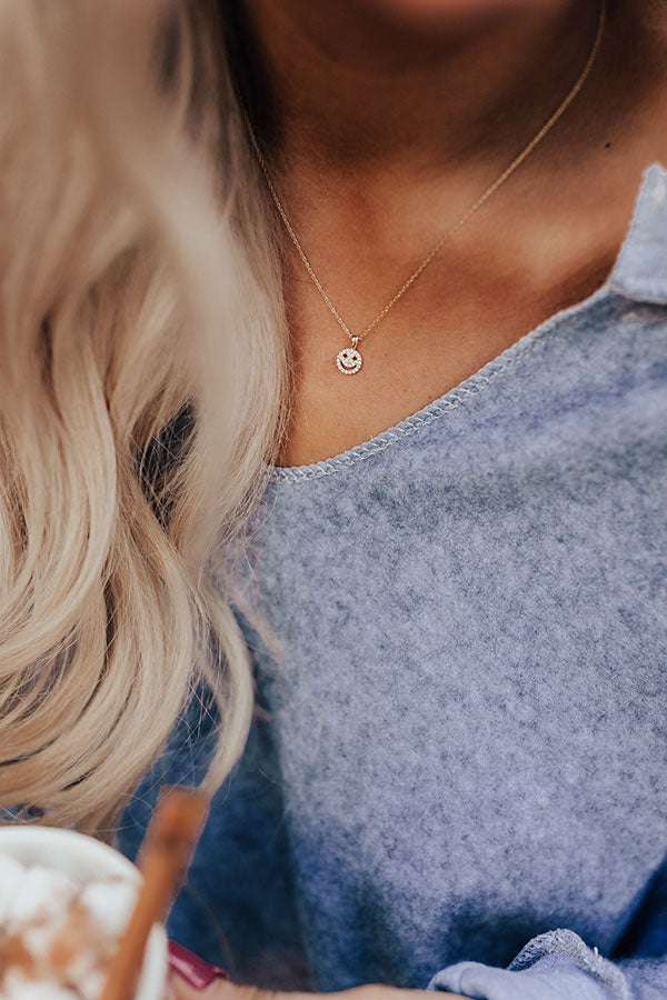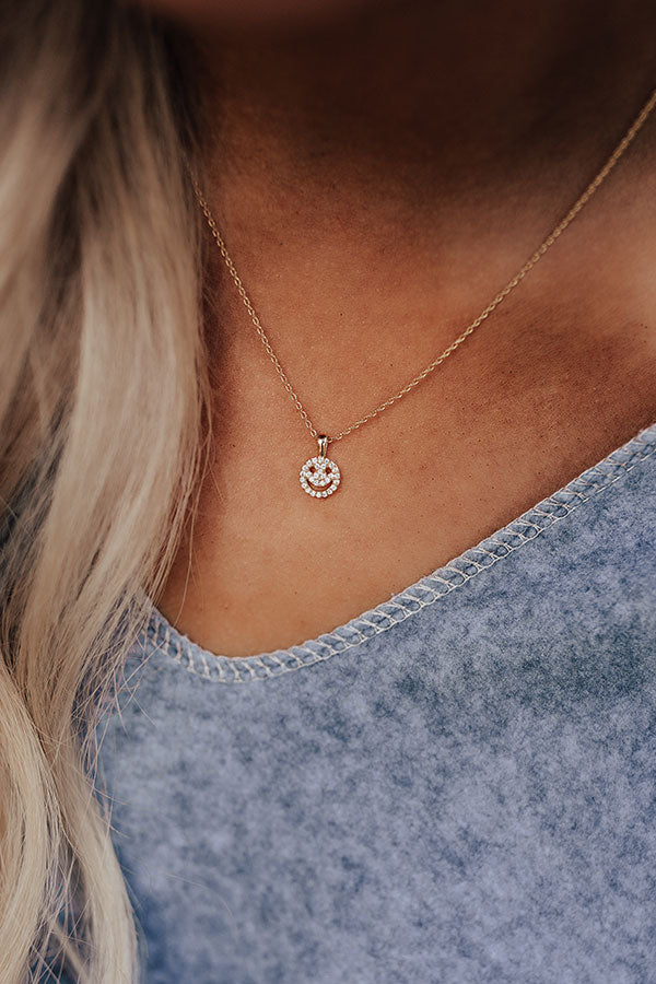 We have no doubt you will smile when you put on our darling gold 'Bliss On Broadway Necklace' featuring a dainty chain with a small smiley face charm!