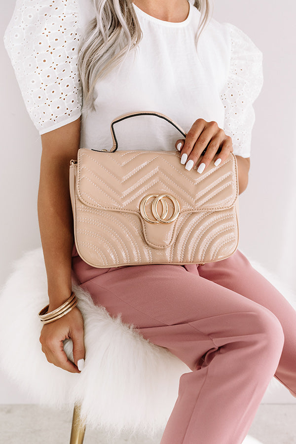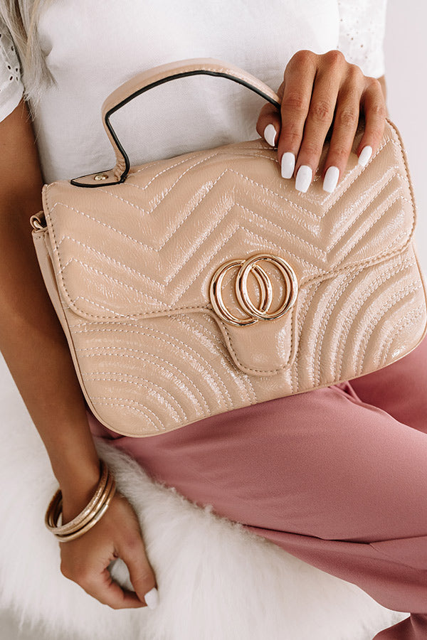 There is no better accessory to complete your OOTD with than our iced latte colored "Blogger Meetup" crossbody featuring sleek faux leather material with quilted texturing, a gold chain link shoulder strap, one tote handle, and a spacious fully lined rectangular pouch with a flap snap button closure and additional inside pockets!