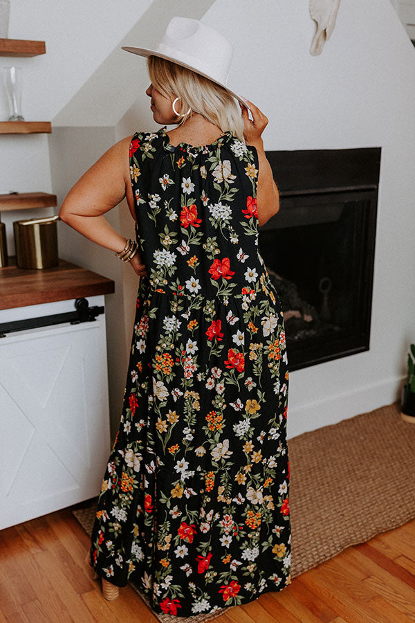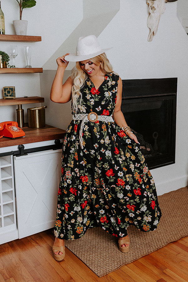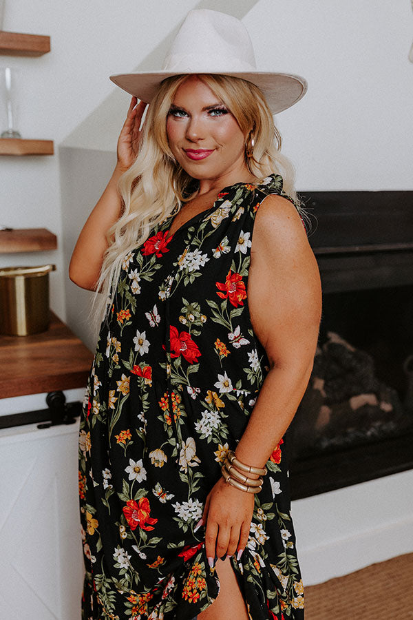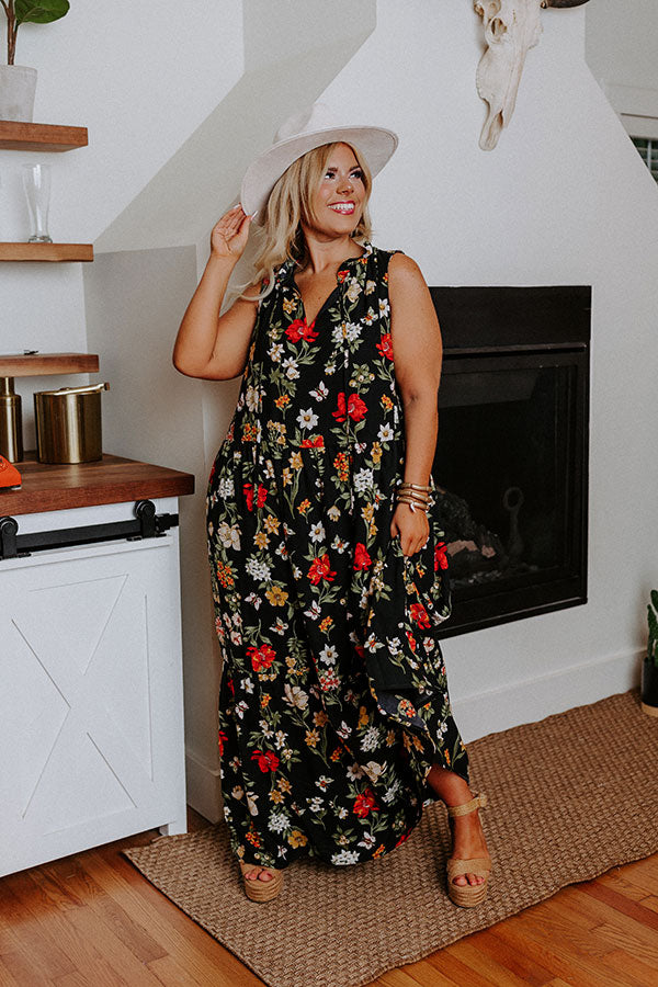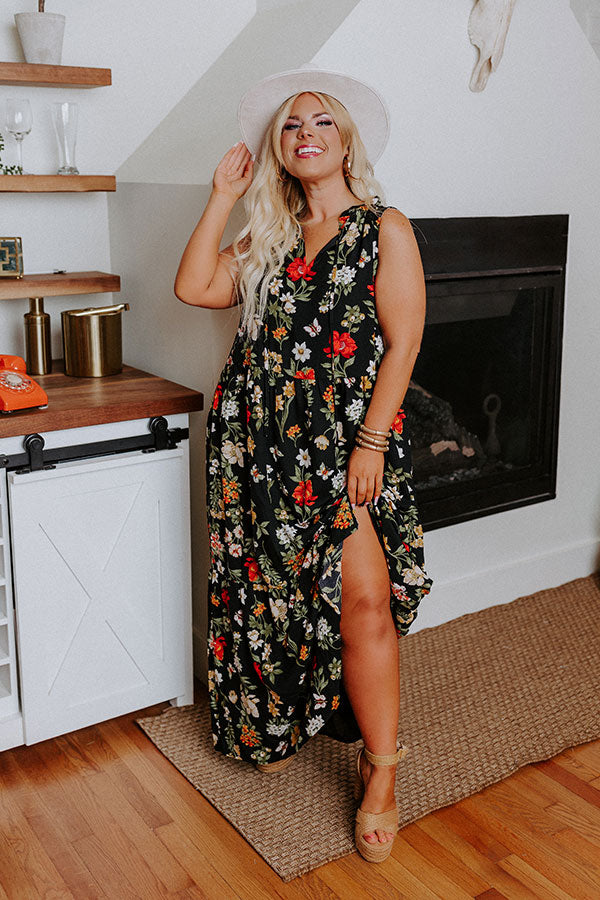 You will be a blooming beauty in this gorgeous black plus size maxi dress featuring lightweight material patterned with a pretty floral print, a v-cut neckline with a tie closure, wide sleeveless shoulder straps, and a relaxed silhouette that cascades into a straight ankle-length hemline!