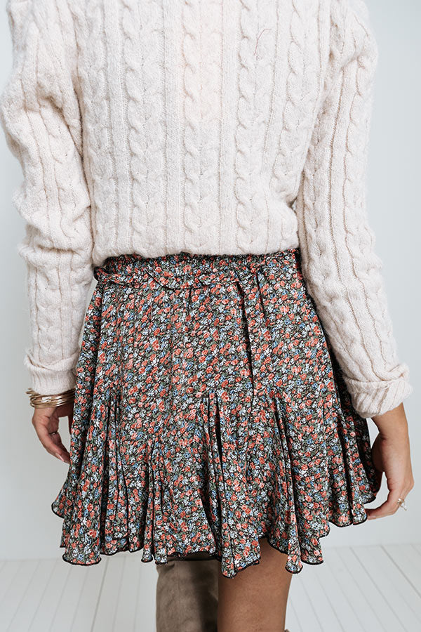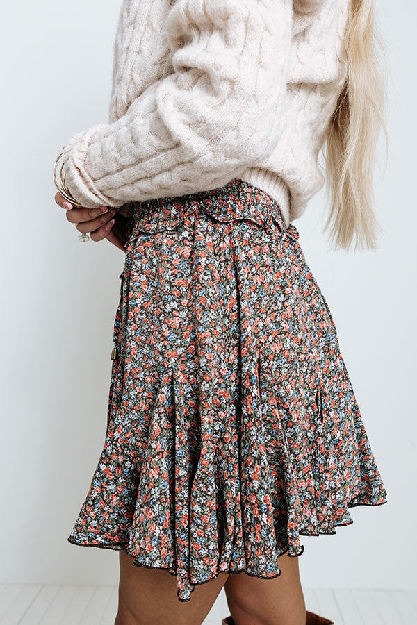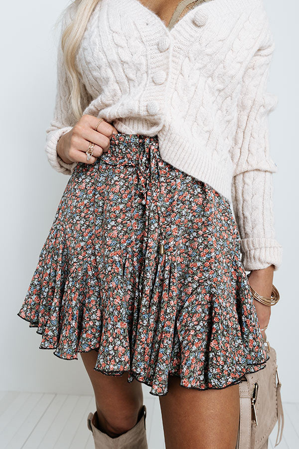 Twirl around in style with our adorable brown 'Blooms In Tulum Skort' featuring lightweight breezy material patterned with a blue and pink hued floral print, a wide elastic waistline with a tie closure, and a relaxed silhouette that falls into a pleated upper-thigh length hemline! Measurements
