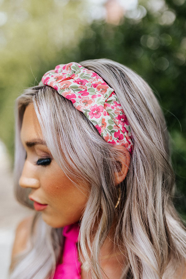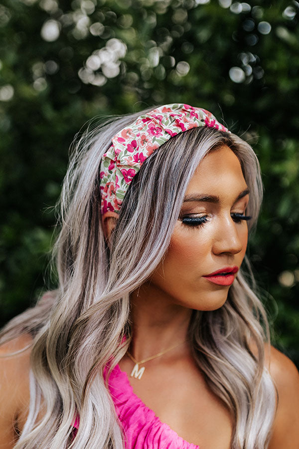 Let your flower child side run free by topping off your look with our darling 'Blossom Babe' headband patterned with a rose and green colored floral print!