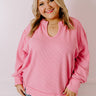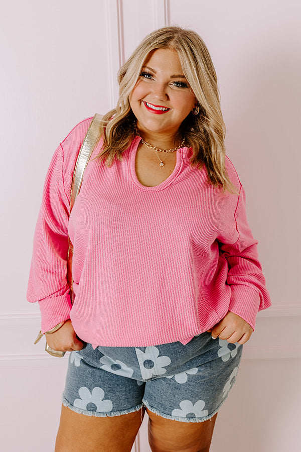 - Casual is the new cool with this trendy top! - Unlined material with a ribbed texture and unfinished seam accents - A u-notched neckline - Long sleeves - A relaxed silhouette that ends in a straight hemline with side slit accents