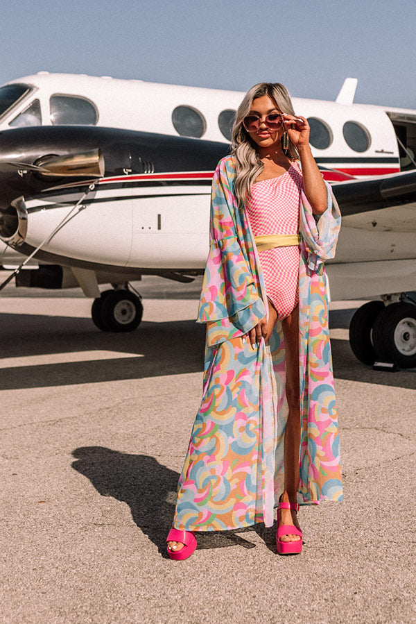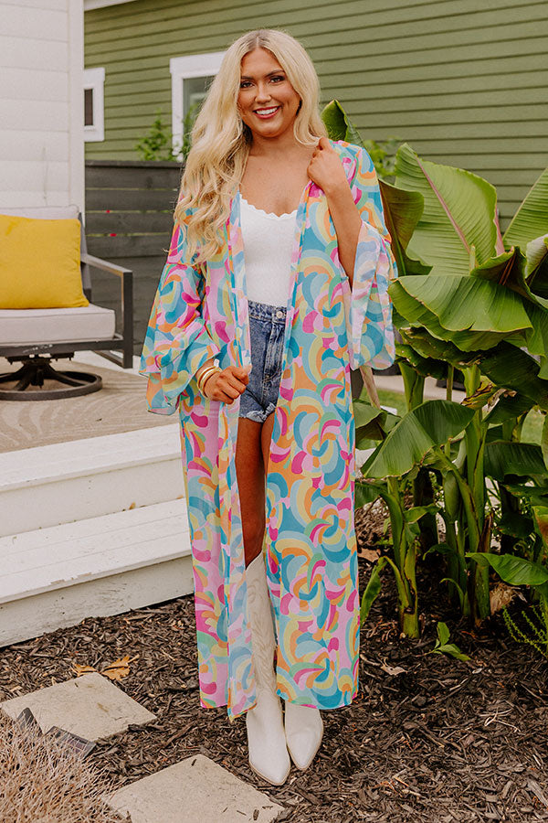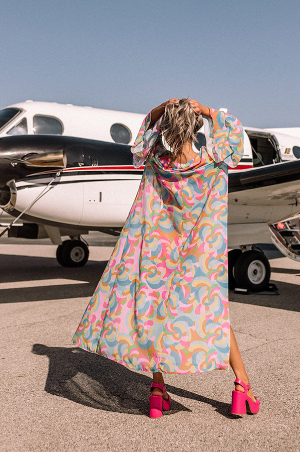 - Relaxed, open draped silhouette that ends in straight mid-calf length hemlines