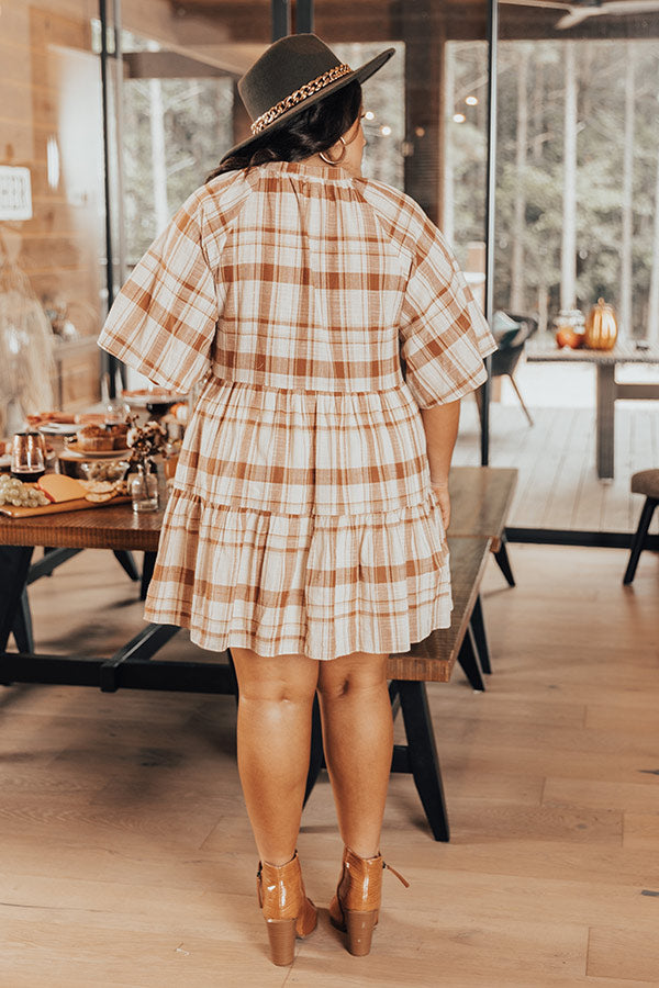 Boho In Soho Plaid Shift Dress in Camel Curves