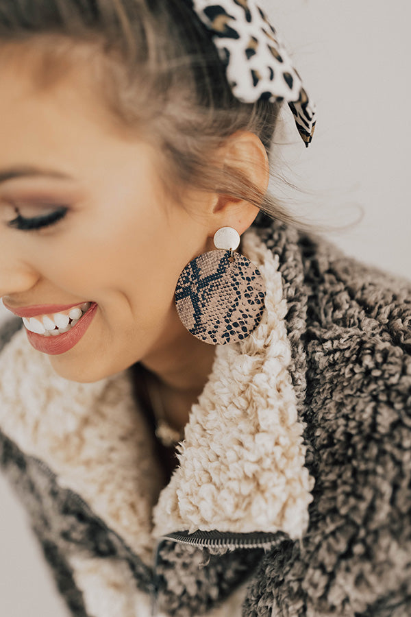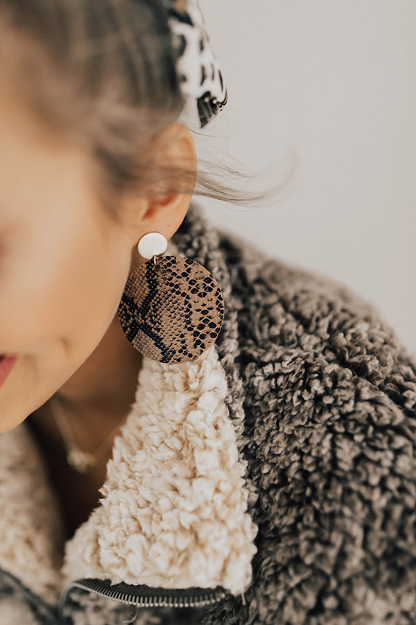Bombshell Status Snake Print Earrings in Brown