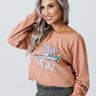 Travel in style all year round in our adorable peach hued 'Bon Voyage' sweatshirt featuring soft garment-dyed material with a cute airplane graphic on the front, a rounded neckline, long loose sleeves with fitted cuffs, and a slouched silhouette that ends in a straight hemline!