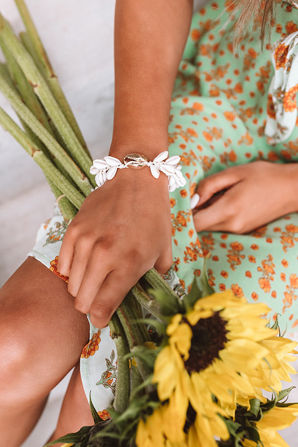 Carry a piece of the beach with you everywhere you go with this darling bracelet featuring a dainty rope band adorned with white sea shells!
