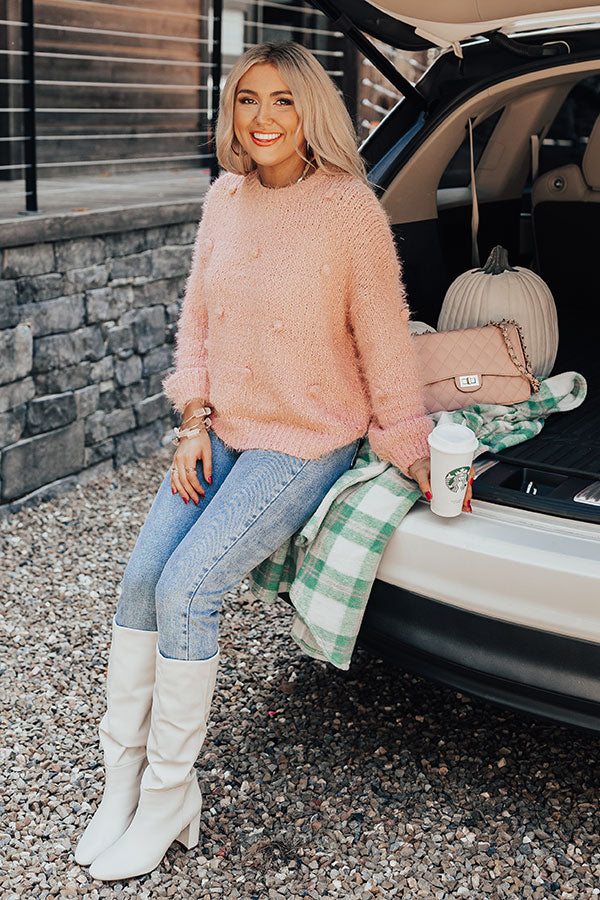 Slay all day in our darling pink 'Bonfire Belle' sweater featuring ultra soft loose knit material with eyelash fringe texturing and subtle polka dot detailing, a rounded neckline, long loose sleeves, and a slouched silhouette that falls into a straight hemline! Measurements