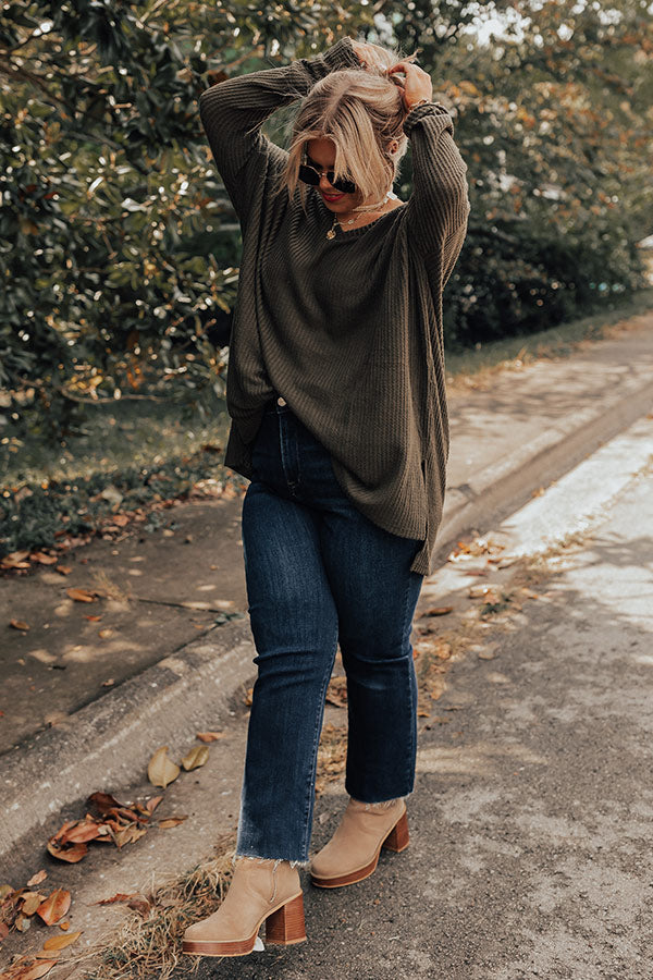 Bonfire Date Waffle Knit Tunic In Army Green Curves