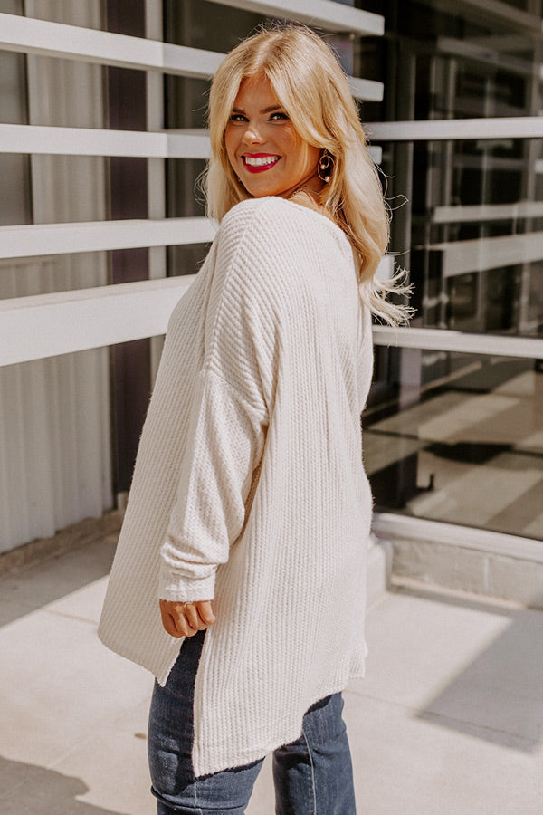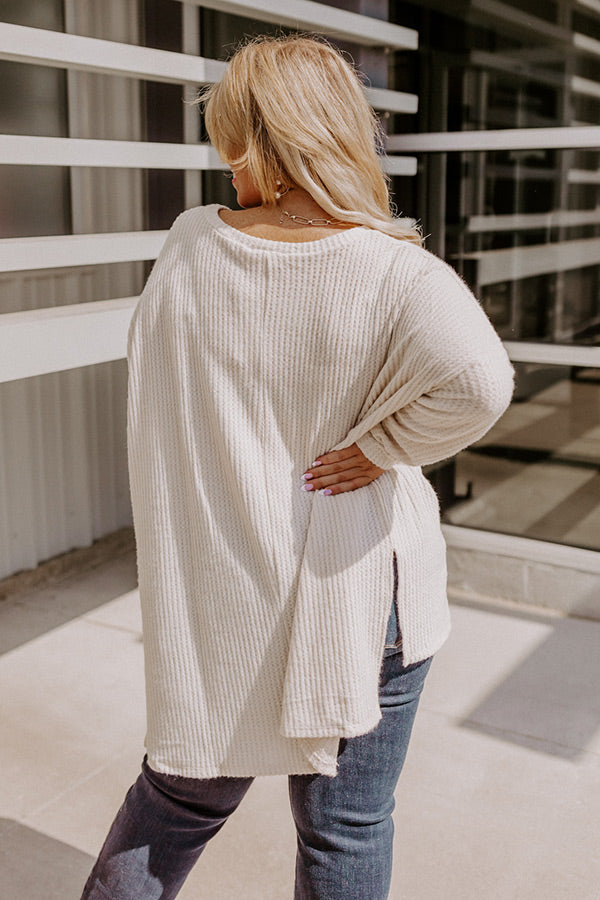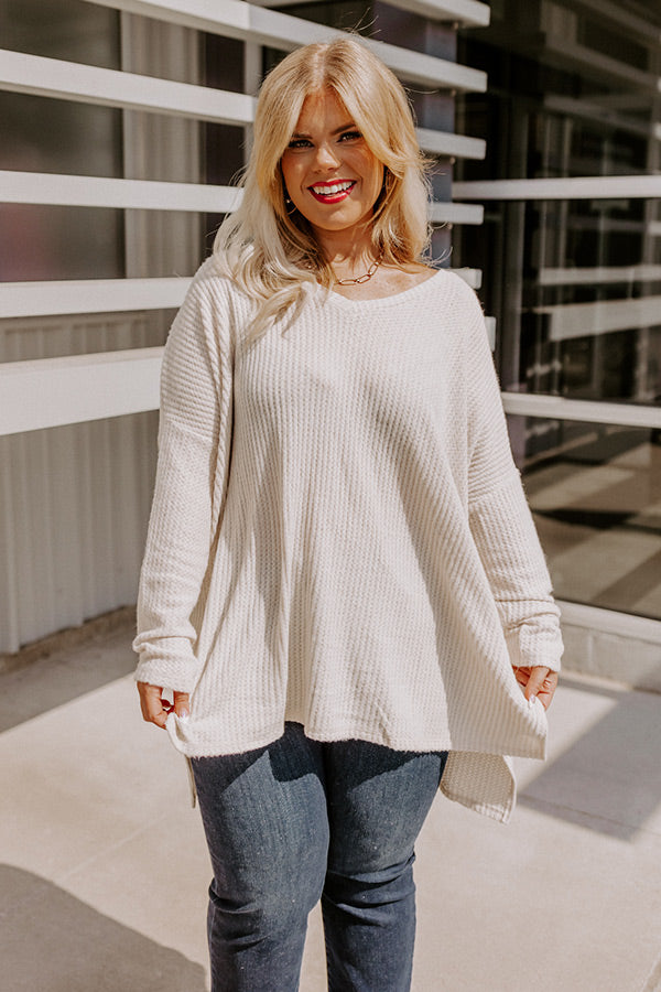 Bonfire Date Waffle Knit Tunic In Cream Curves