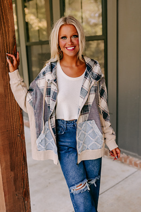 - Head to the bonfire in this adorable knit jacket! Its hooded neckline and spacious front pockets make it perfect for staying cozy whether you're in your own back yard or enjoying cabin side scenery.