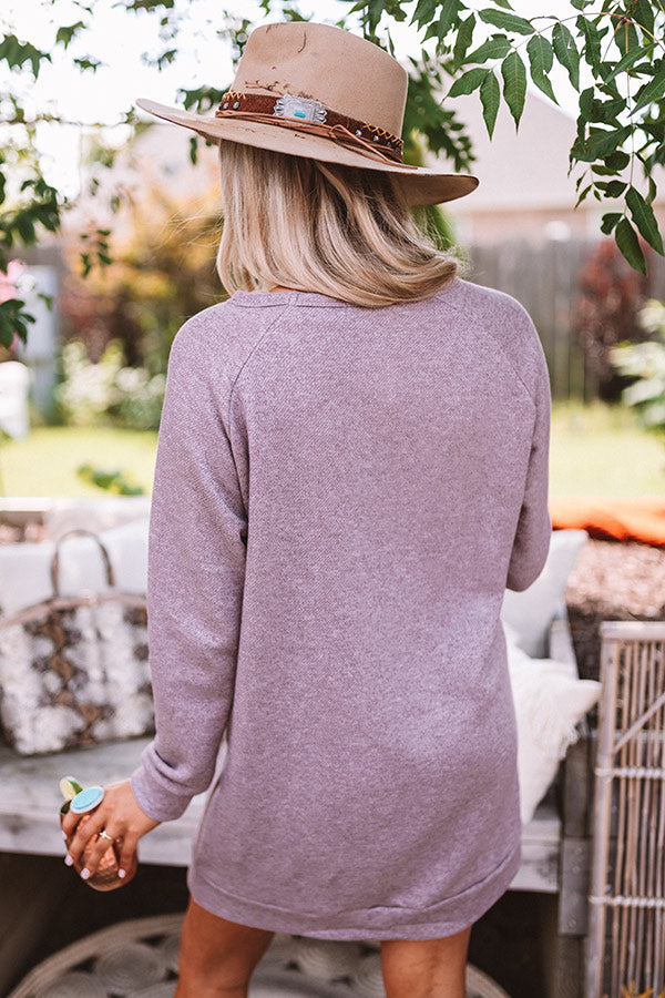 Dress warm for those chilly fall evenings in our adorable wine colored "Bonfire Promises Shift Tunic Dress" featuring soft lightweight material, a high rounded neckline, long loose sleeves with fitted cuffs, and a relaxed silhouette that falls into a straight mid-thigh length hemline! We have styled this cutie with some turquoise statement jewelry and a brown boot and wool hat, but you can also wear it layered under a jean jacket with "The Jess Faux Leather Heel in Grey" and our "New On The Block Faux Leather Fringe Tote in Grey!" Measurements