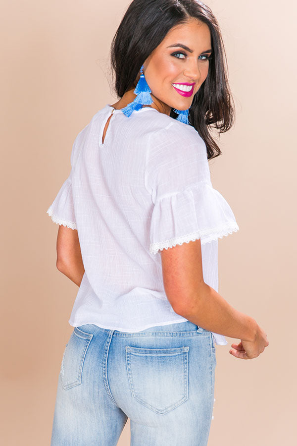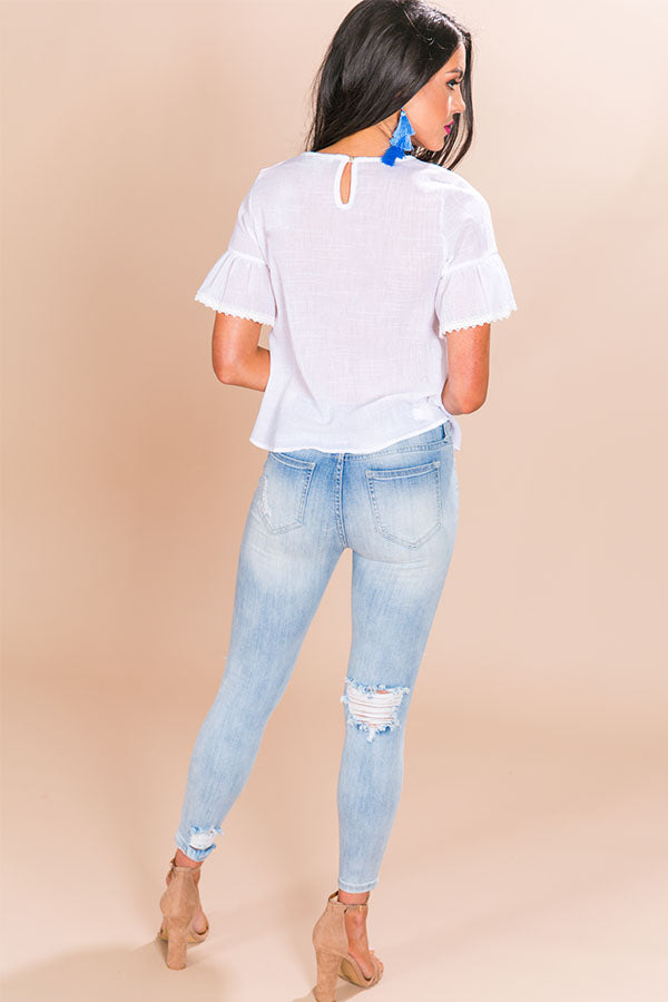The "Bora Bora Babe Shift Top" is the ultimate travel companion! This wear-anywhere beauty has flirty flounce sleeves with crochet trim, & an ultra breezy cotton bodice that is perfect for all of your warm-weather plans. Throw on your favorite denim for an effortlessly stylish outfit in minutes!