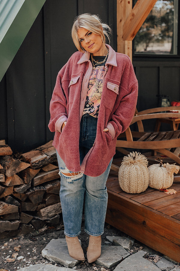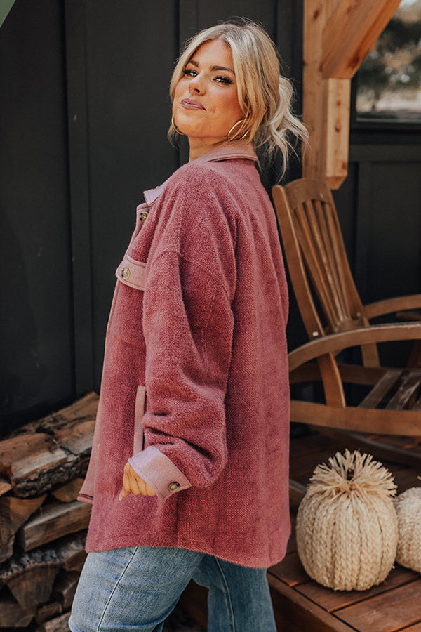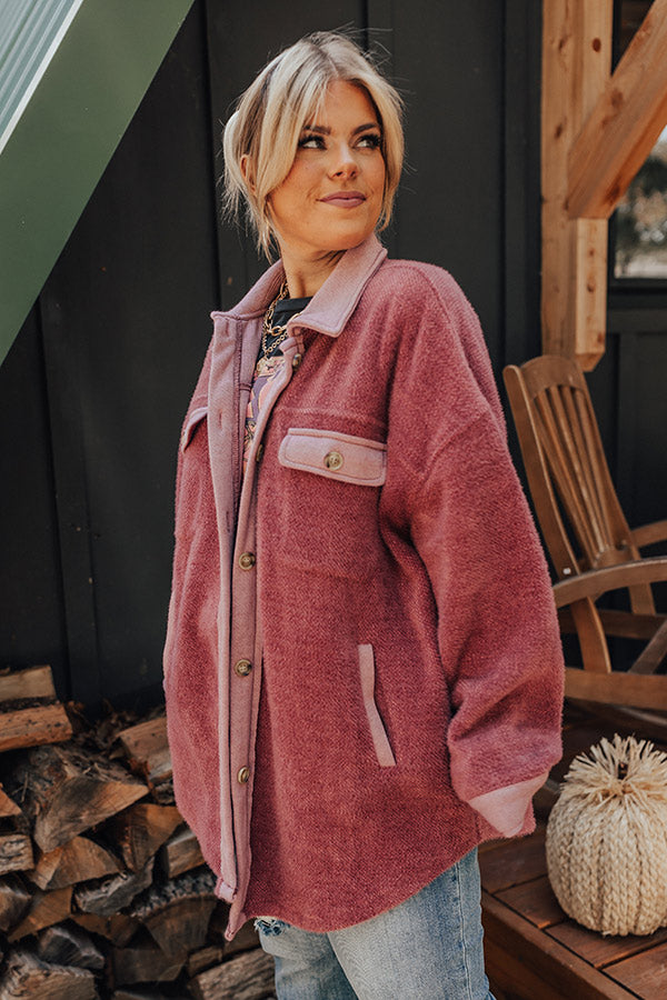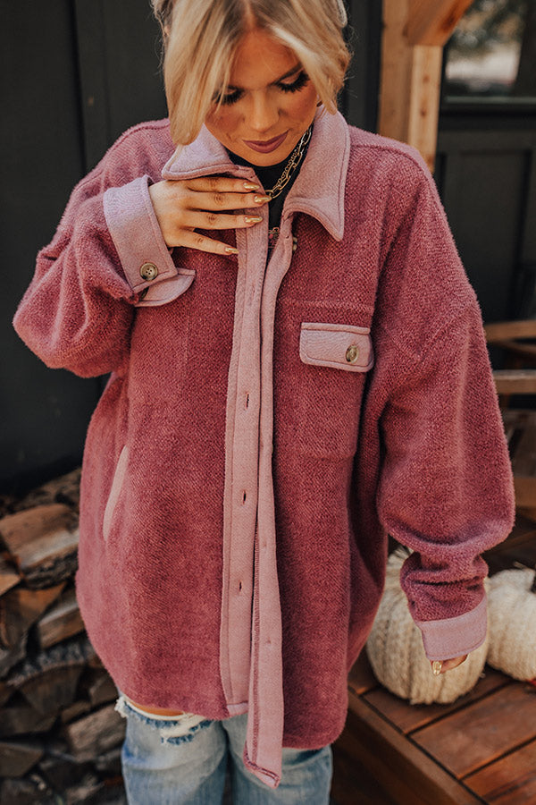 Perfect for layering, our 'Boston Chill Jacket In Blush' is a total must-have! Features a 50% chenille material, collared neckline buttoned down cut, long sleeves with button closure cuffs, two side and two flap pockets on the chest, and a flattering silhouette that falls into a round hemline.