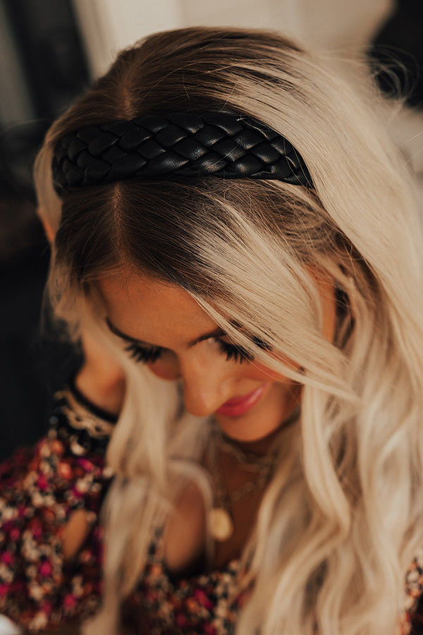 Upgrade your look with our adorable black 'Boston Nights' headband featuring braided faux leather material!