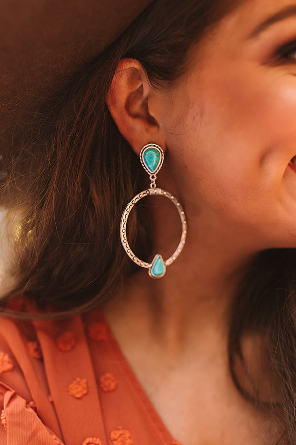 Arrive in style with our gorgeous "Botanical Brunch" statement earrings featuring turquoise studs and large dangling vintage silver hoops with turquoise stone accents!