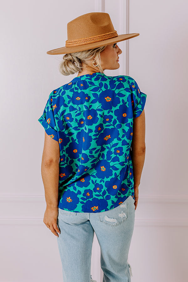 - Unlined material with an abstract floral print featuring green, blue, and orange hues