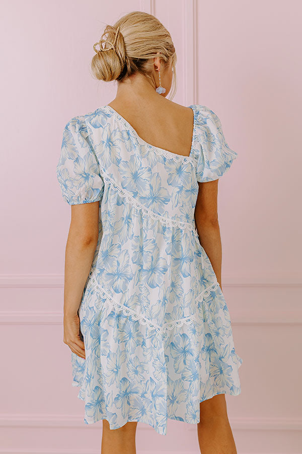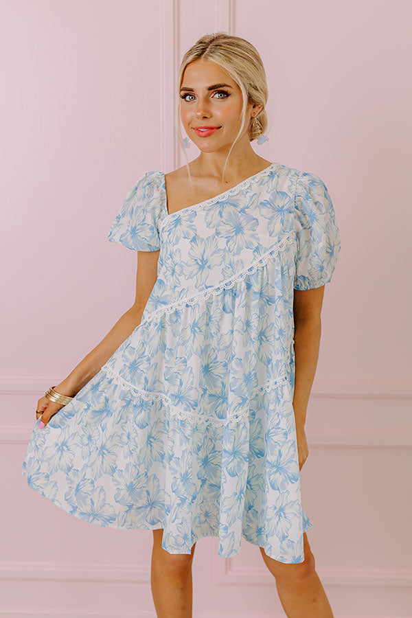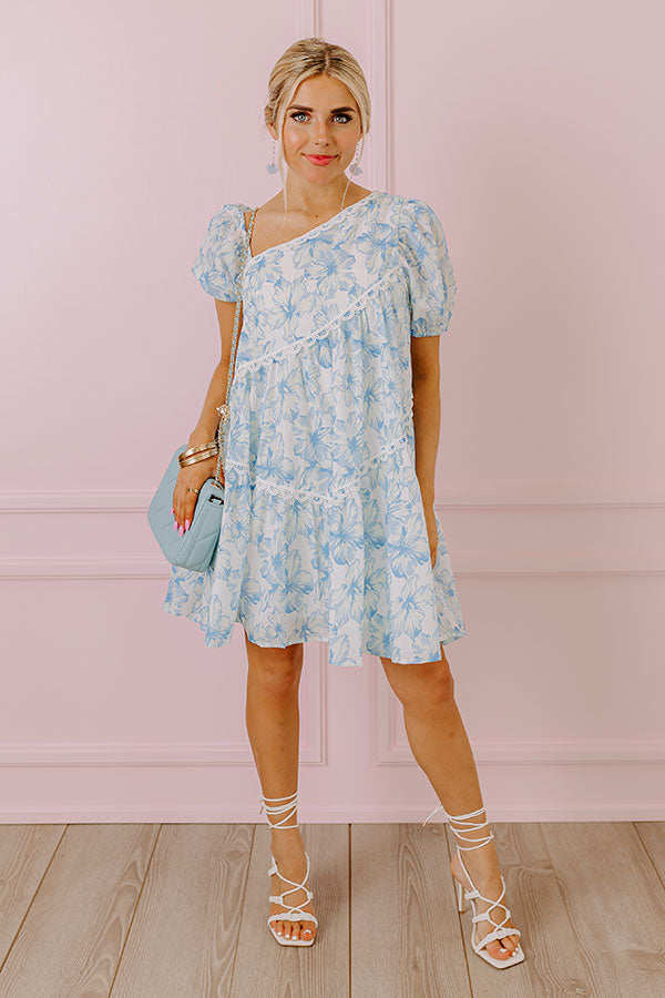 Botanical Garden Stroll Asymmetrical Mini Dress in Sky Blue