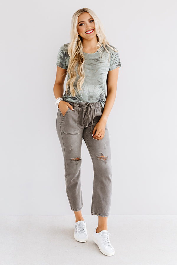 Stay on trend in our casual "Bound For Big Sur" tee featuring soft lightweight material patterned with sage colored tie dye, a high rounded neckline, raw-cut trim detailing, short loose sleeves, and a relaxed silhouette that falls into a rounded hemline! We have styled this piece with some distressed gray jeans and trendy sneakers, but you can also wear it layered under a jean jacket with "The June Bootie in Sage," our "Ticket To Style Baseball Cap in Birch," and our "New On The Block Faux Leather Fringe Tote in Birch!"