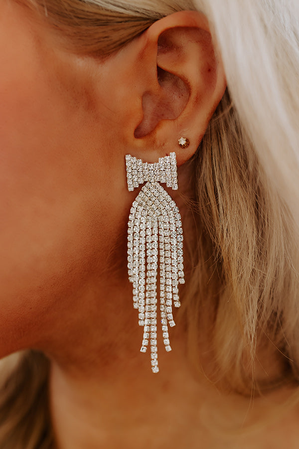 - Rhinestone bow studs with a dangling rhinestone fountain design